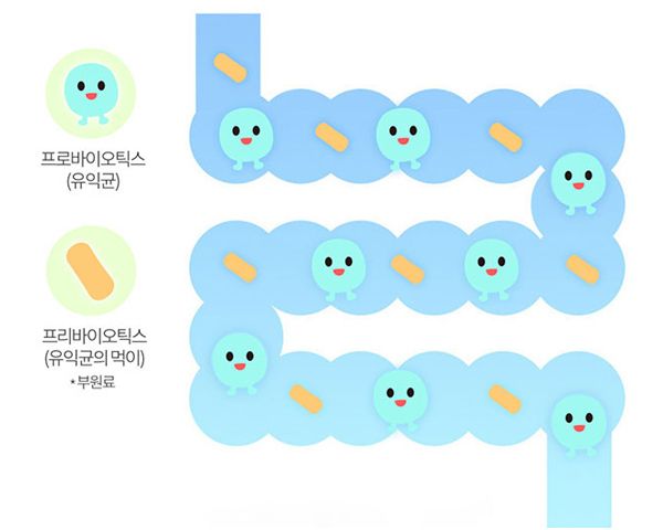 유산균 1포에는 17종의 프로바이틱스가 1억 이상 투입됐다. 프로바이오틱스(유익균)와 프리바이오틱스(유익균의 먹이)가 한포에 황금비율로 함유됐다. 섭취 시 유해균은 감소하게 되고 유익균이 증식해 건강한 배변활동에 도움을 준다.