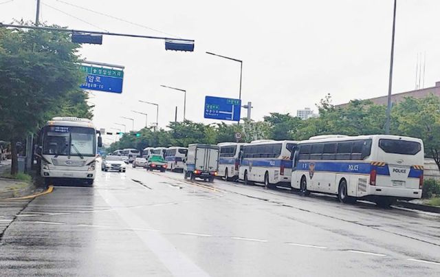 경찰 버스가 11일 오전 서울 마포구 디지털미디어시티역 인근에서 대기하고 있다. 경찰은 이날 오후 2~11시 서울월드컵경기장 주변 도로 교통을 통제한다. / 이하 사진=독자 제공