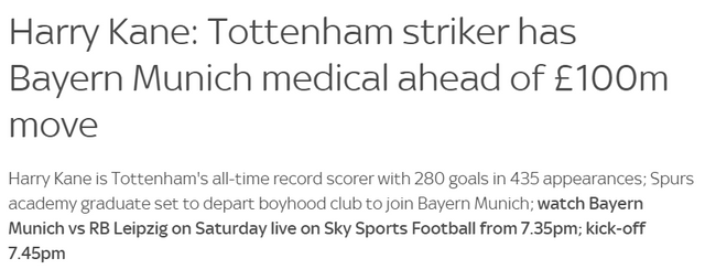 앞서 케인이 뮌헨으로 향하기 전, 케인의 비행기 탑승 여부를 둘러싸고 진실공방이 벌어지기도 했다. 뮌헨 측, 토트넘 측 기자의 말이 달랐고, 각 언론사들도 다른 소식을 내보내면서 팬들이 대혼란에 빠졌다.