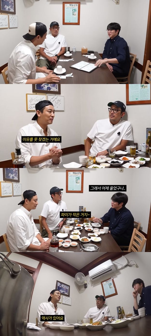 이어 하정우는 "이 식당이 이상하게 영화하는 사람이 많이 온다. 언론배급시사회, 제작발표회 끝나면 항상 여기서 술 먹었어"라고 이야기했다. 주지훈은 "이 룸 안에 영화계의 역사가 있다. 서로 멱살잡고 울고불고 했다"고 설명했다.