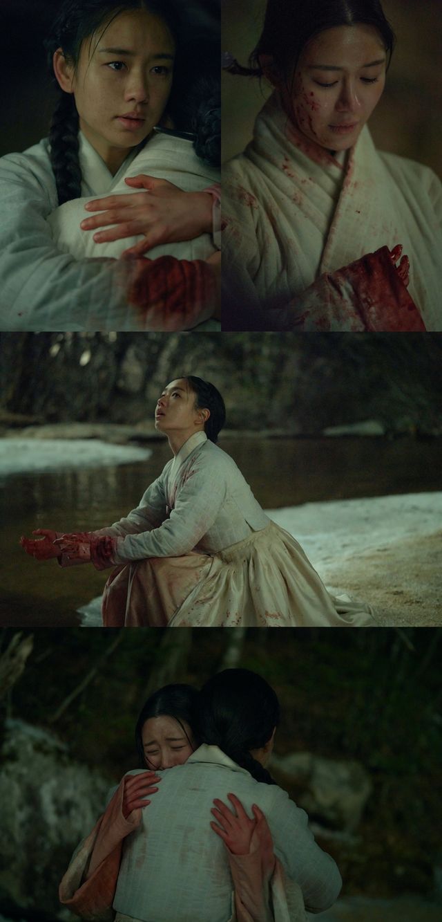 이와 관련, 공개된 사진 속 유길채와 경은애는 무슨 이유에서인지 얼굴과 손에 붉은 피를 뒤집어쓴 채 서로를 끌어안고 있다. 경은애가 하염없이 눈물을 흘리는 가운데 흔들림 없는 유길채의 눈빛이 인상적이다.