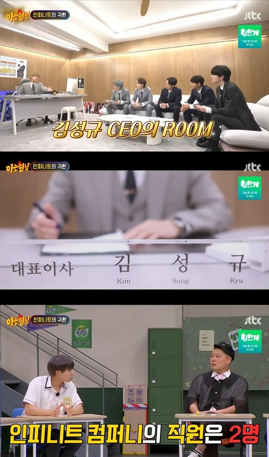 한편, 김성규는 대표가 된 후 모든 선택에 잘못될까 미안함을 느낀다고 고백했고 멤버들은 "그래서 혼자 선택을 하지 않고 우리와 같이 하더라. 다수결로 결정한다"며 인피니트 컴퍼니만의 운영 방식을 이야기해 놀라움을 안겼다.