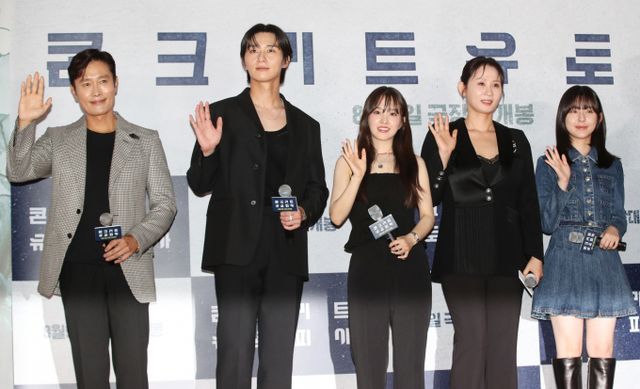 '콘크리트 유토피아'는 대지진으로 폐허가 된 서울에서 유일하게 남은 황궁 아파트로 생존자들이 모여들며 시작되는 이야기를 그렸다. 이병헌, 박서준 등이 출연한다.