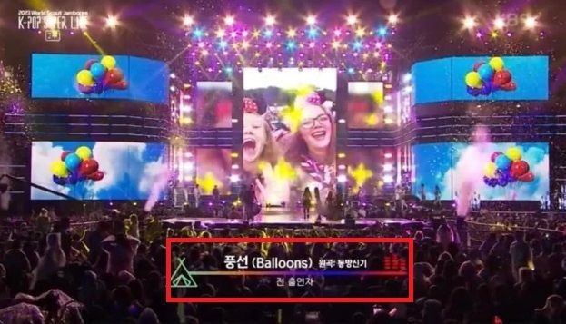 지난 11일 진행된 '잼버리 K팝 콘서트'는 국내를 대표하는 K팝 아티스트 19팀이 총출동한 가운데, 마지막 순서로 전 출연진들이 함께 무대에 올라 '풍선'을 부르는 합동 무대가 펼쳐졌다. 이때 생중계된 화면 속 '풍선'의 원곡자로 동방신기로 표기되어 눈길을 끌었다. '풍선'은 지난 1986년 다섯손가락이 발표한 곡으로, 또한 지난 2006년 동방신기가 리메이크하여 세대를 초월한 곡으로 오랜 사랑받아 왔다.