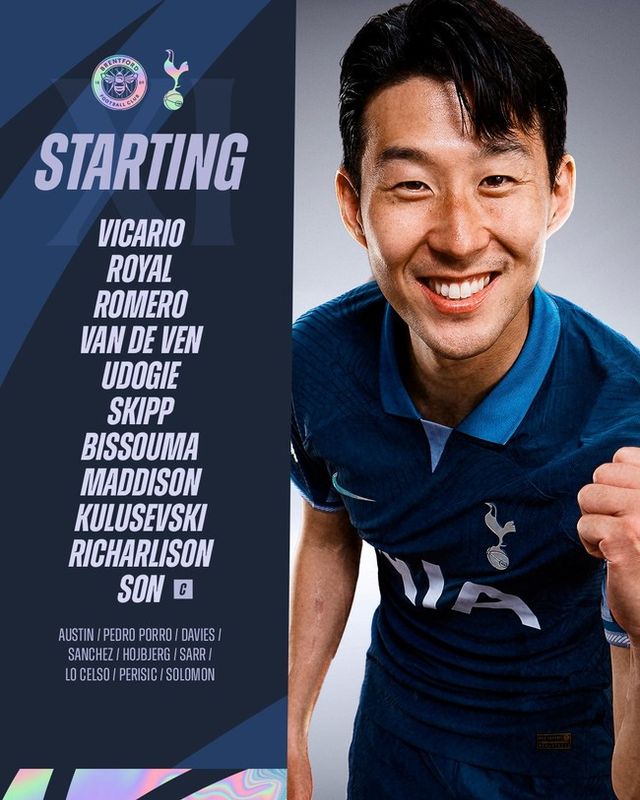 케인 없이 치른 첫 경기, 포스테코글루 감독은 손흥민을 좌측 윙포워드로 기용하는 4-3-3 포메이션을 가동했다. 중앙에는 히샬리송이 배치됐고, 우측에는 데얀 쿨루셉스키가 뛰었다. 중앙에서 좌우측은 제임스 메디슨과 올리버 스킵, 정중앙에는 이브 비수마가 배치됐다. 측면 풀백에는 데스티니 우도지와 에메르송 로얄이 나왔다. 예상된 선수 명단과 비슷했다.