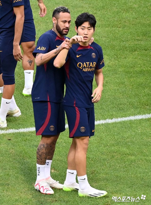 네이마르는 PSG 캠퍼스에서 진행된 프리시즌 훈련 초기부터 이강인과 꾸준히 호흡하며 적응을 도왔다. 아시아 투어에서도 두 선수는 부상으로 벤치에 앉아 있을 때 서로 장난을 치며 환상의 케미를 자랑했다. 이강인은 네이마르의 엉덩이를 걷어차는 등 익살스러운 장면을 연출하기도 했다.