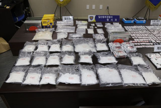 경찰은 이들로부터 필로폰 7.2㎏과 액상대마 1.9㎏, 케타민 2.8㎏, 코카인 20g, 합성대마 4.9㎏, 엑스터시 4018정, 신종마약 ‘포도’(필로폰·엑스터시 혼합물) 296g 등 총 19㎏(70만 명 투약분, 630억 상당)의 마약류을 압수했다.