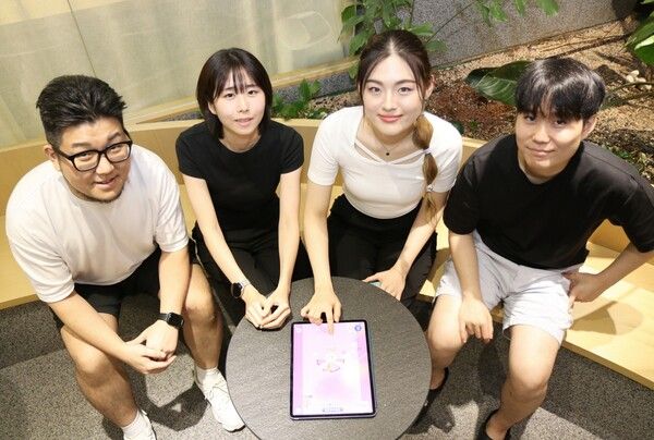 ▲ (좌측 상단부터 시계방향)컴투스 기획 지한솔 사원, 클라이언트 권혜영 사원, 원화 이윤지 사원, 클라이언트 안덕규 사원(사진=컴투스 제공)