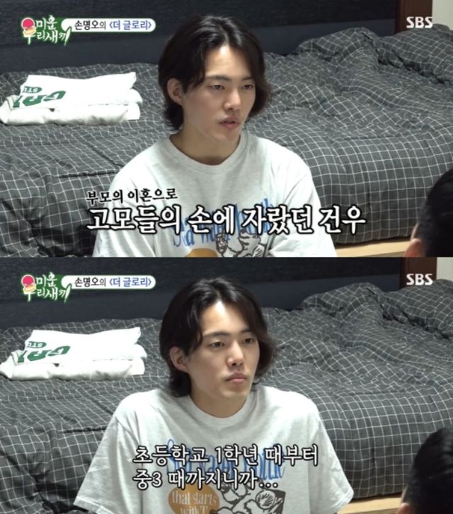 김건우는 당시 친구들과 함께 이야기를 나눴는데, 어린시절 부모님이 이혼 후 생계로 바쁜 아버지로 인해 고모들과 지냈다고 고백했다. 그는 "초등학교 1학년 때부터 중학교 3학년 때 까지 큰아빠 집에서 2년, 큰고모 집에서 4년, 막내 고모 집에서 4년 넘게 있었다"고 설명했다.