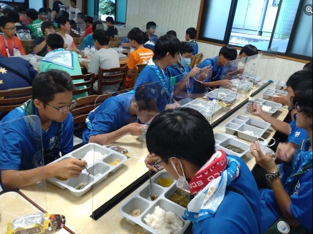 이하 사찰에서 식판 식사 중인 일본 잼버리 대원들. / 이하 일본 대원 SNS