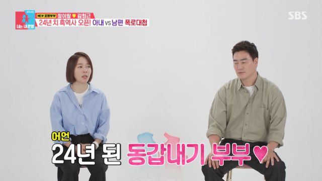 하지만 정이랑 남편 김형근은 “아르바이트 중 여자가 왔다고 해서 보러 갔다. 정이랑이 얼굴을 돌렸는데 너무 못생겼었다. 강남 여자에 대한 로망이 있었다”라고 말해 폭소케 했다.