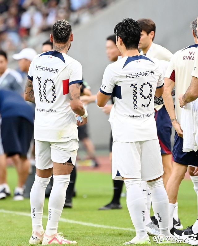네이마르는 부상 중에도 아시아 투어에 참가했는데, 이강인과 형 동생처럼 지내며 경기장 안팎에서 한국 축구의 미래를 잘 챙겨줬고, 이강인 역시 그를 잘 따르며 월드클래스 공격수와의 우정을 과시했다.