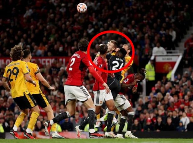 판정 논란이 발생했다. 후반 추가시간 울버햄튼 공격 상황에서 크로스가 올라왔고 칼라이지치가 헤더를 시도했다. 오나나는 저지를 위해 몸을 날렸는데 칼라이지치 머리를 가격했다. 오닐 감독을 비롯해 울버햄튼 선수들은 강하게 항의를 했다. 페널티킥(PK)을 주장한 것이다. 주심의 판단은 ‘노 파울’이었다. 오닐 감독의 항의가 이어지자 옐로우 카드를 들어 논란을 빚었다.