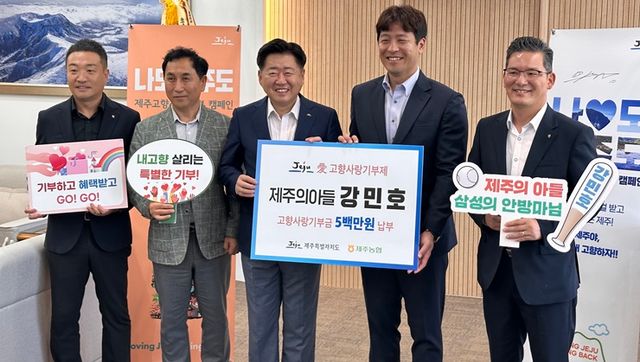 강 선수는 이날 "고향 제주를 잊어본 적이 없으며 제주도민들의 응원에 힘입어 지금까지 자랑스러운 제주 출신 야구선수로 활동하고 있다"며 "고향사랑 제주 기부가 확산될 수 있도록 홍보하는 데도 앞장서겠다"고 밝혔다.