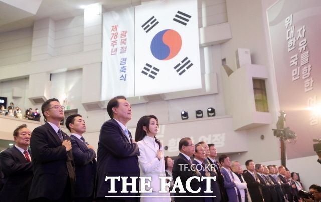 [더팩트ㅣ박숙현 기자] 윤석열 대통령은 15일 '제78주년 광복절 경축식' 경축사에서 "정부는 또한, '담대한 구상'을 흔들림 없이 가동해 압도적 힘으로 평화를 구축함과 동시에, 북한 정권이 핵과 미사일이 아닌 대화와 협력의 길로 나와 북한 주민의 민생을 증진시킬 수 있도록 국제사회와 공조해 나갈 것"이라고 말했다.