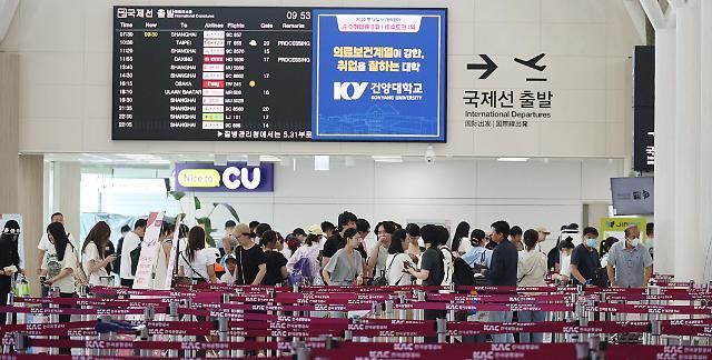 航空业界认为,夏季休假旺季的8月客运量增长率将进一步上升,或超过85%。据机场公社消息,本月截至目前,从韩国出境的旅客最多的一天为13日,抵达仁川机场入境的旅客最多的为6日。机场公社预测,今年夏季旅游旺季(7月25日至8月15日)仁川机场的旅客数量将恢复至2019年(20.7447万人次/天)的86%水平。
