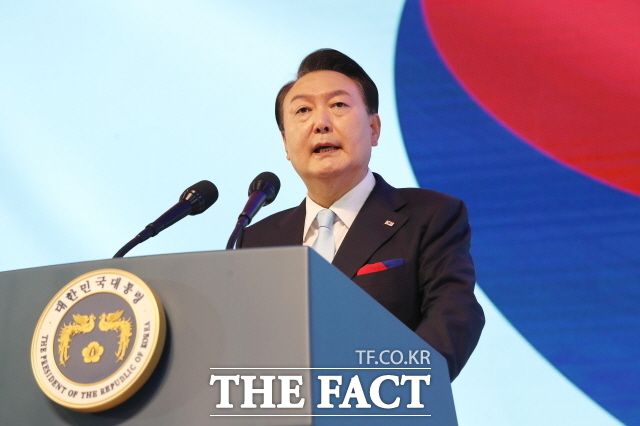 [더팩트ㅣ박숙현 기자] 윤석열 대통령은 15일 오전 서울 서대문구 이화여자대학교 대강당에서 열린 '제78주년 광복절 경축식' 경축사에서 "자유를 찾아 출발한 대한민국의 여정은 지금 우리에게 자유뿐 아니라 평화와 번영을 가져다줬다"면서 "우리는 이제 세계시민의 자유, 평화, 번영에 책임있게 기여해야 하는 역사적 숙명을 기꺼이 받아들여야 한다"고 했다.
