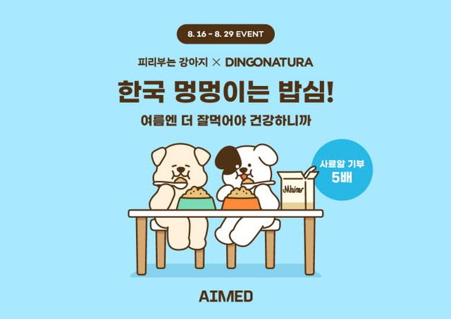 하반기 첫 행보는 딩고나투라와 함께한다. 딩고나투라에서 음수량 및 영양 밸런스 최적화 습식 사료 '밈스', 프리미엄 건강 간식 '모멘츠' 지원에 나서 '한국 멍멍이는 밥심'이란 주제로 8월 16일부터 29일까지 2주간 진행할 예정이다.