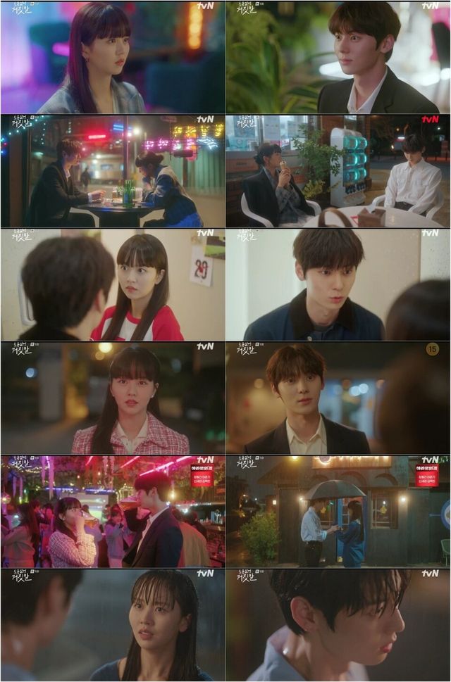 목솔희 걱정에 우산을 챙겨 들고 타로 카페를 찾은 김도하는 뜻하지 않게 두 모녀의 대화를 듣고 말았다. 목솔희의 눈물을 처음 본 김도하는 마음이 아팠다. 손길을 뿌리치며 모든 게 다시 틀어질 거라고 자신의 능력을 원망하는 목솔희. 그리고 이어진 목솔희의 “나는 거짓말이 들려요”라는 말은 충격이었다. 숨겨왔던 자신의 비밀을 김도하에게 말하는 목솔희의 눈물 어린 고백, 그리고 혼란스러운 김도하의 빗속 눈맞춤 엔딩은 애틋함을 자아내는 동시에 궁금증을 높였다.