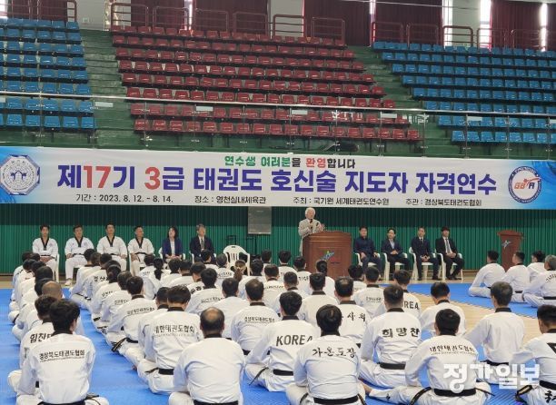 정가일보 이혜영 기자 | 국기원(원장 이동섭)이 주최하고 경상북도태권도협회가 주관한 제17기 3급 태권도 호신술 지도자 자격연수가 8월 12일부터 14일까지 참가자들의 열띤 호응 속에 경북 영천실내체육관에서 열렸다.