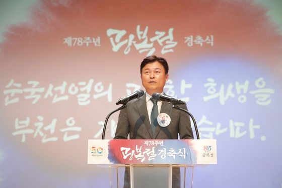 ▲ 조용익 부천시장이 제78주년 광복절 경축식에서 인사말을 하고 있다. |