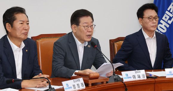 이재명 더불어민주당 대표가 16일 국회에서 열린 최고위원회의에서 발언하고 있다. ⓒ 연합뉴스