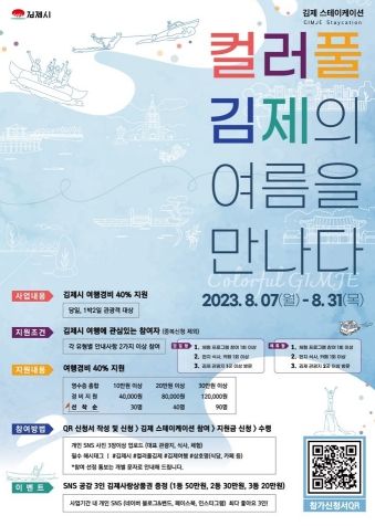 [파이낸셜경제=김영란 기자] 김제시는 아름다운 경관(뷰티풀), 맛있는 먹거리(원더풀), 재미있는 체험(조이풀) 등으로 구성된 컬러풀한 김제의 여름을 만끽할 수 있는 여행체험관광상품(김제스테이케이션)을 마련하여 8.7일부터 8.31일까지 운영한다.