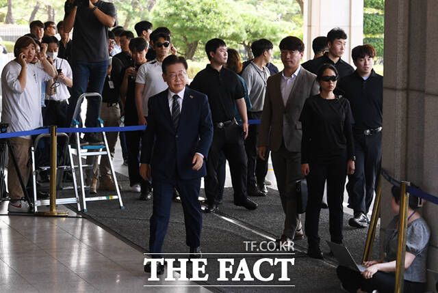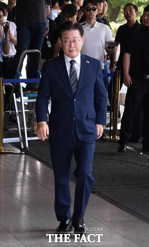서울중앙지검 반부패수사1부(엄희준 부장검사)는 이날 오전 이 대표를 특정경제범죄 가중처벌법상 배임 등 혐의로 소환 조사한다. '성남 FC 후원금 의혹' 관련 1번의 조사, 대장동 개발 의혹 관련 2번의 조사에 이어 네 번째 검찰 출석이다.