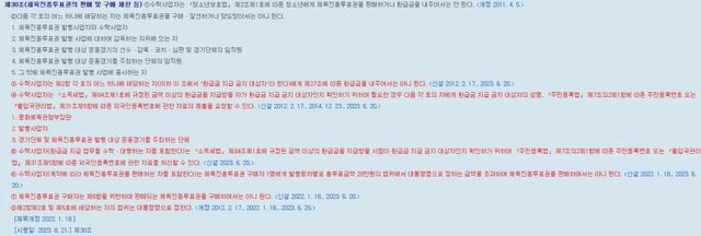 6월 20일 공포된 국민체육진흥법 제30조(체육진흥투표권의 구매 제한 등)에는 5항이 새롭게 신설돼 수탁사업자(환급금 지급 업무를 수탁·대행하는 자 포함)가 환급 신청자(환급금을 지급받을 자)의 주민등록번호 등 개인정보를 이용해 제한자 여부를 즉시 파악할 수 있게 됐다.