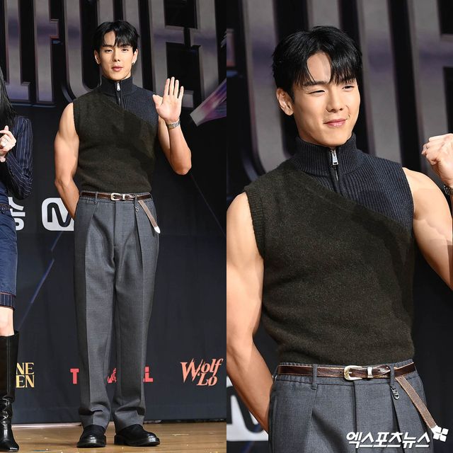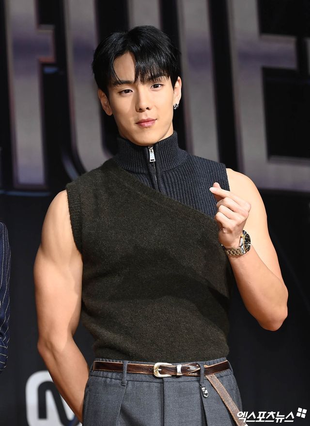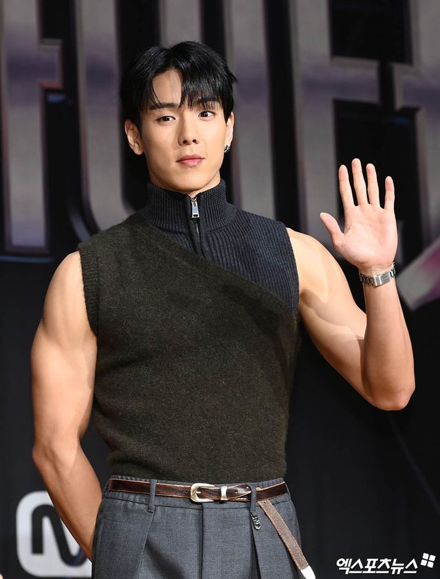 이날 행사에 참석한 몬스타엑스 셔누가 포토타임을 갖고 있다.