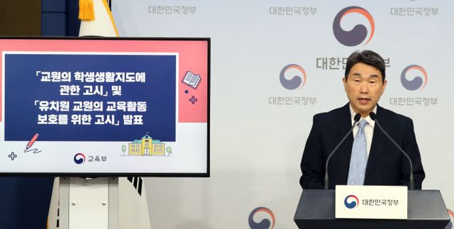 오늘 고시안 발표 내용에서 일부 학생인권조례가 있는 지역의 조항들이 상충하는 것들이 있다. 이 경우 고시가 법령 체계의 일부이기 때문에 조례에 우선한다. 그래서 이 법령과 조례가 상충될 경우에는 교육부가 지자체에 시정, 정비를 권고할 수가 있다. 그래서 저희가 앞으로 시도교육감님들과 협의를 하면서 당연히 고시가 확정이 되면 상충하는 부분에 대해서는 개정을 권고할 예정이다.