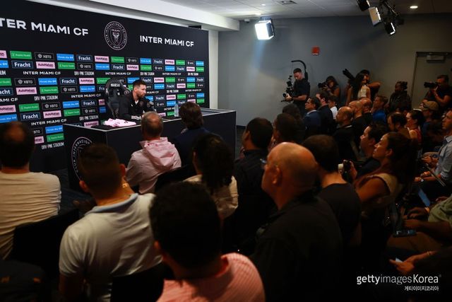 메시는 지난 6월7일 인터 마이애미 합류 발표 후 두 달여 만에 첫 공식 기자회견을 가졌다. 미국 플로리다 주 포트 로더데일에 자리한 마이애미의 홈구장 DRV PNK 스타디움에서 17일(현지시각) 진행된 기자회견은 취재 열기로 뜨거웠다. 회견장은 수많은 기자들로 가득 찼다. 일부는 바닥에 앉아야 할 정도였다고 AP통신은 전했다.