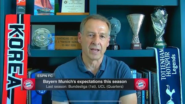 클린스만 감독은 이달 초 ‘ESPN’의 뉴스 분석 프로그램에 화상통화 형식으로 출연한 바 있다. 현역 시절 토트넘홋스퍼에서 바이에른으로 이적한 경험이 있으며, 바이에른 감독직도 역임했던 클린스만 감독은 당시 같은 루트로 이적할 거라는 소문이 무성했던 해리 케인에 대해 이야기할 적임자였다. 방송사 입장에선 그랬다.