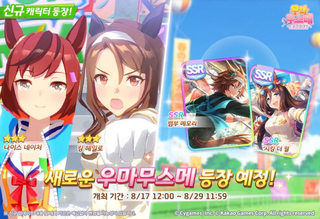 카카오게임즈는 사이게임즈가 개발한 '우마무스메 프리티 더비'에 신규 의상의 육성 우마무스메 2명을 추가했다.