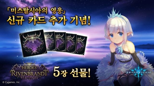 사이게임즈코리아는 '섀도우버스'에 제29탄 카드팩 'Heroes of Rivenbrandt/미스탈시아의 영웅'의 신규 추가 카드를 출시했다.