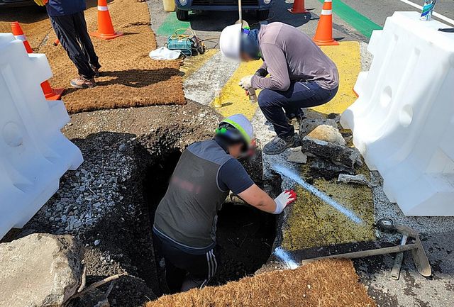 현장 확인 결과 포트홀은 지름 86㎝∼1.3m, 깊이는 1.2m가량으로 확인됐다.
