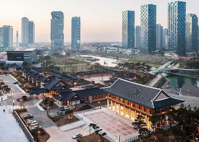한옥 호텔, 다들 한번쯤 들어보셨죠? 이러한 형태는 한옥마을 같은 곳 내에 자리해 있는 것이 일반적이지만, 경원재 앰배서더는 최첨단 국제도시 송도의 현대적인 건물들 사이에서 고풍스러운 전통미를 뽐내 이국적인 느낌을 줍니다.