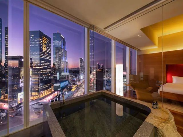 방에 들어서면 정면에 고층 빌딩인 무역센터가 보이기 때문인데요. 바닥부터 천장까지 통 유리창으로 되어 있어, 역동적인 강남의 도시 전망을 감상할 수 있기까지 합니다.