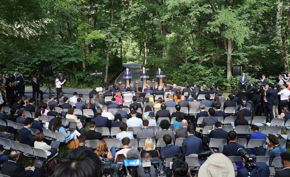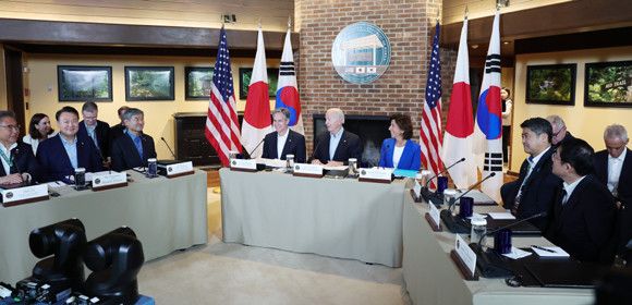 캠프 데이비드에서 열린 한미일 정상회의는 3국 정상 간 한미일 협력에 대한 강력한 의지와 돈독한 신뢰·유대 관계를 반영하고 있다. ⓒ 연합뉴스