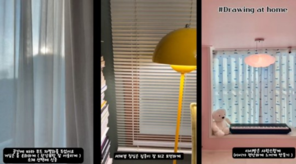 바닥은 자녀를 위해서 라돈을 차단하는 매트로 교체를 했으며 오래된 아파트라 마룻바닥이 많이 일어나 있어 아이를 위해 매트를 선택했다고 말했다. 그리고 밝은 톤을 선택, 집안이 화사해졌다고 하며 갤러리 스튜디오처럼 바뀌었다고 자랑했다.