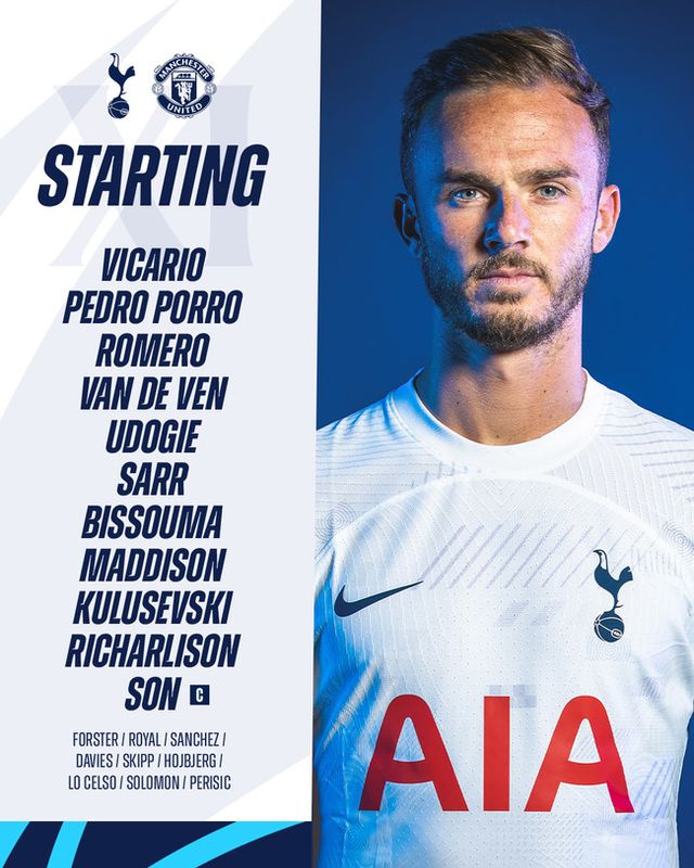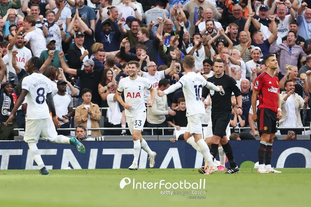 토트넘 훗스퍼는 20일 오전 1시 30분(이하 한국시간) 토트넘 훗스퍼 스타디움에서 열린 2023-24시즌 잉글리시 프리미어리그(EPL) 2라운드에서 맨체스터 유나이티드를 2-0으로 격파했다. 이로써 토트넘은 시즌 첫 승을 신고했으며 브렌트포드전(2-2 무승부)에 이어 무패를 이어갔다. 더불어 1승 1무(승점 4)로 5위에 올랐다.