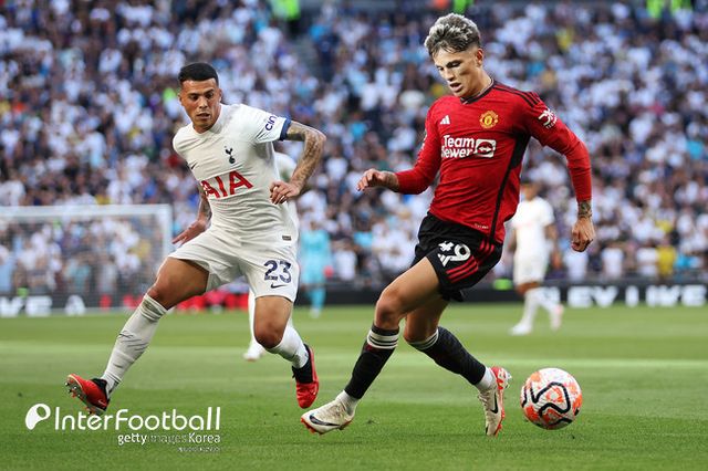 곧바로 맨유가 반격했다. 전반 2분, 토트넘 진영에서 맨유가 압박에 성공했다. 이후 가르나초가 접기 동작 후 내줬고 안토니가 슈팅으로 연결했으나 크로스바 위로 살짝 떴다.