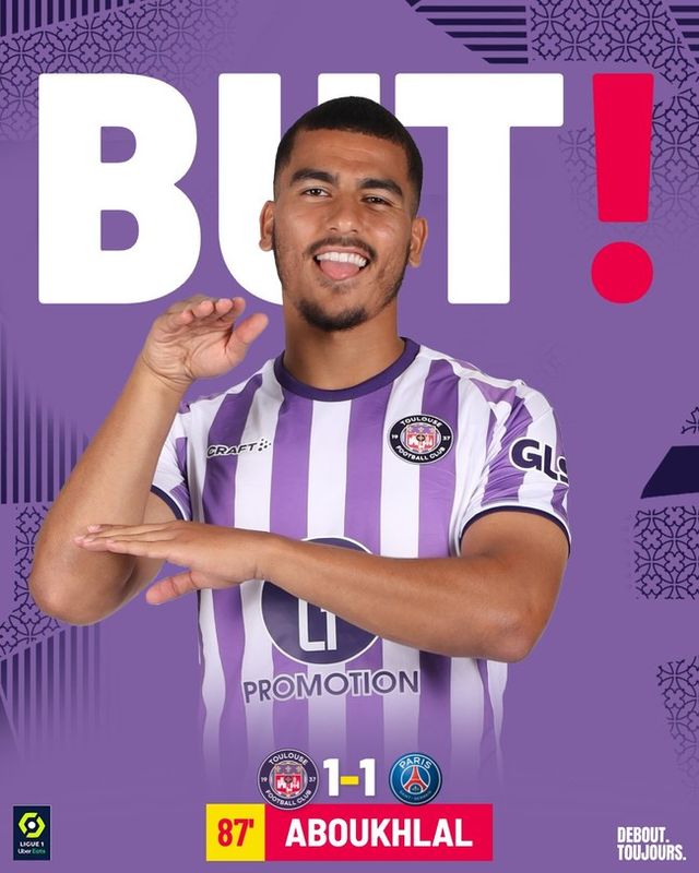 툴루즈가 동점골을 넣었다. 후반 40분, 코너킥 상황에서 하키미가 아부클랄 발을 밟았다. 주심이 PK를 선언했고 아부클랄이 키커로 나서 왼쪽 하단으로 차 골망을 흔들었다.
