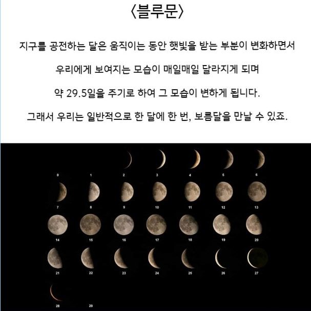 ‘블루문’은 뭘까요? ‘블루문’은 한 달에 두 번 보름달이 뜨는 경우 두 번째 뜨는 달을 ‘블루문’이라고 부릅니다.