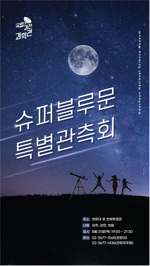 한형주 관장은 “이번 슈퍼 블루문을 놓치면 14년을 기다려야 하는 드문 천문 현상”이라며 “8월의 마지막 밤에 과천과학관에서 가족들과 다채로운 프로그램을 즐기길 바란다”고 했습니다.