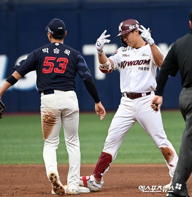 다만 지난 19일 경기는 모처럼 송성문에게 '운이' 따라줬다. 송성문은 팀이 1-2로 끌려가던 5회말 2사 1·3루에서 롯데 선발투수 나균안을 상대로 경기를 뒤집는 2타점 2루타를 때려냈다.