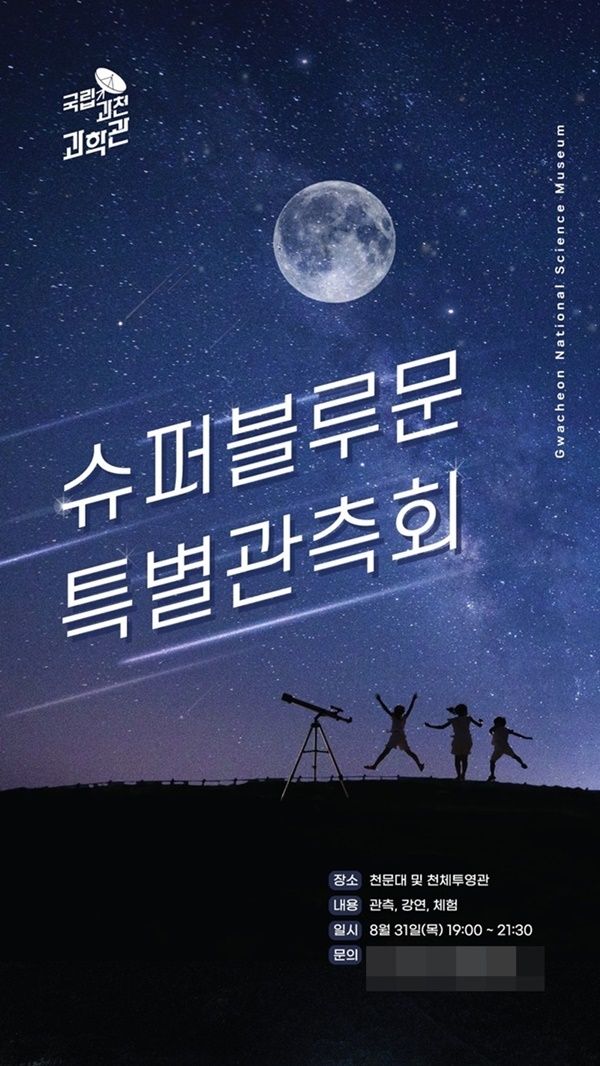 자세한 행사 내용은 과학관 홈페이지를 통해 확인할 수 있다. 한형주 관장은 "이번 슈퍼블루문을 놓치면 14년을 기다려야 한다"며 "8월의 마지막 밤에 과천과학관에서 가족들과 다채로운 프로그램을 즐기길 바란다"고 말했다.