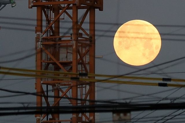 서울 하늘에 슈퍼문이 낮게 걸려 있다.