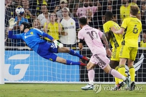 하지만 마이애미에는 메시가 있었다. 전반 23분 메시는 페널티박스 아크 정면에서 상대 수비수들이 밀집해서 막고 있는 틈을 정확히 노리며 환상적인 왼발 중거리 슛으로 네쉬빌 골문 왼쪽 상단을 정확하게 찔렀다. 상대 골키퍼가 반응했지만, 이미 공이 골망을 흔들어 버린 후였다.