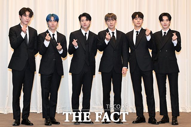 인피니트가 7년 만에 완전체 콘서트를 개최했다. 사진은 지난달 31일 오후 서울 서초구 더 리버사이드 호텔에서 열린 일곱 번째 미니 앨범 '비긴(13egin) 발매 기념 기자간담회에서 포즈를 취하고 있는 인피니트. /남용희 기자